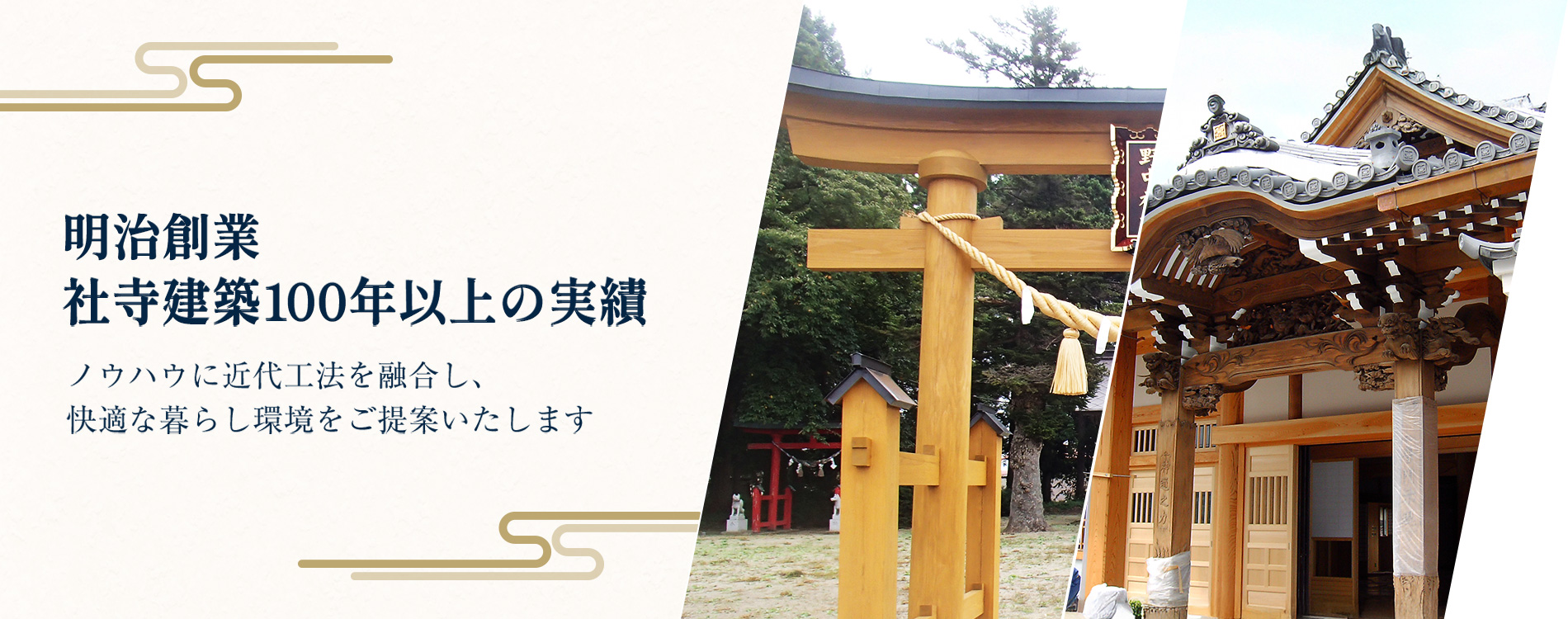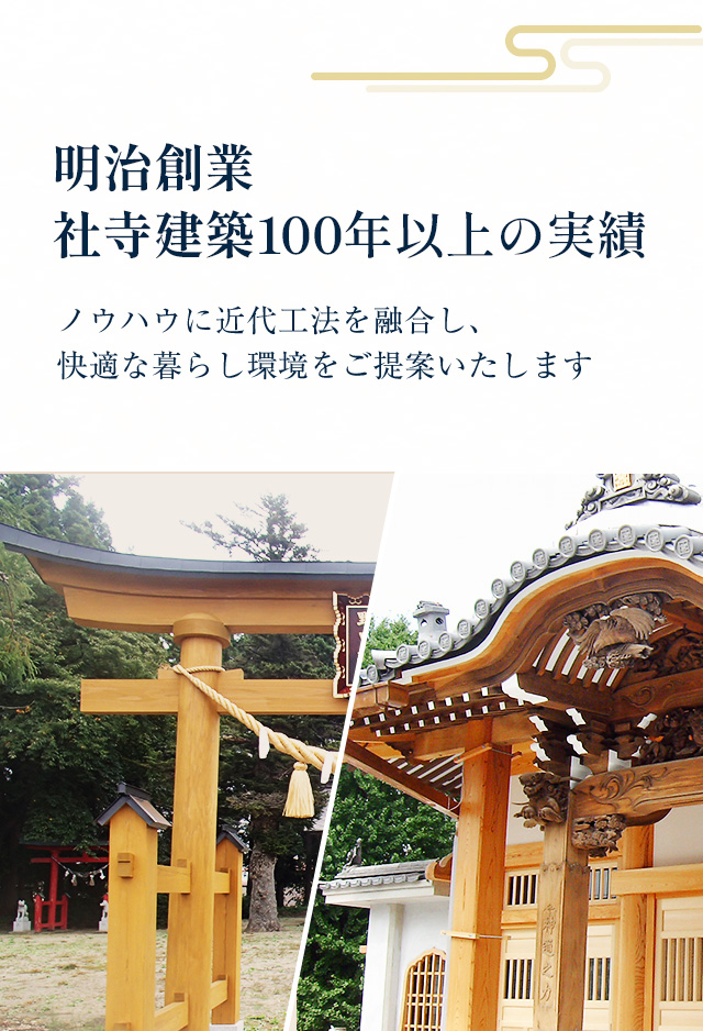 長年培ってきた社寺建築の伝統技法や在来工法に、近代工法を無理なく融合させることで、地域産木材を有効活用しながら、現代の感覚を取り入れた住宅や店舗などの木工事の設計・施工を得意としております。
